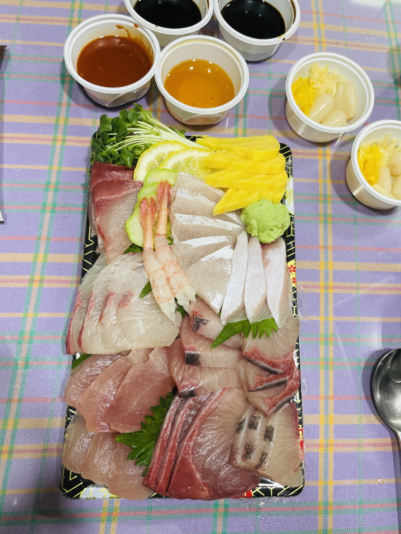 방어철이 돼서 청춘초밥에서도 방어회를 판매하네요. 회 떠서 그 자리에서 바로 먹어야 맛있지만 저희는 포장해서 먹었어요.