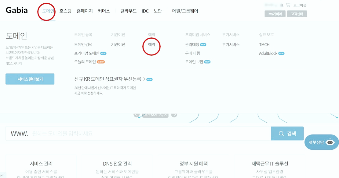 가비아를 예를 들어서 도메인 예약하여 구매하는 방법 공유합니다.
