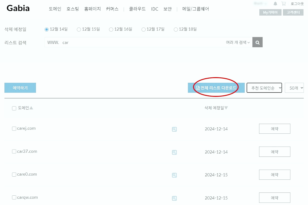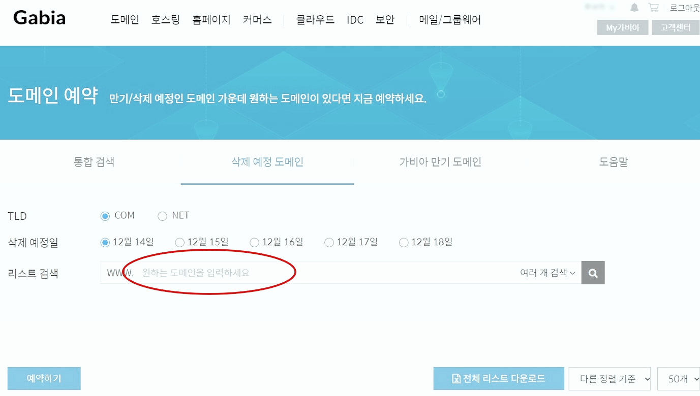 예약을 누르면 삭제예정 도메인을 찾을 수 있는데요.
