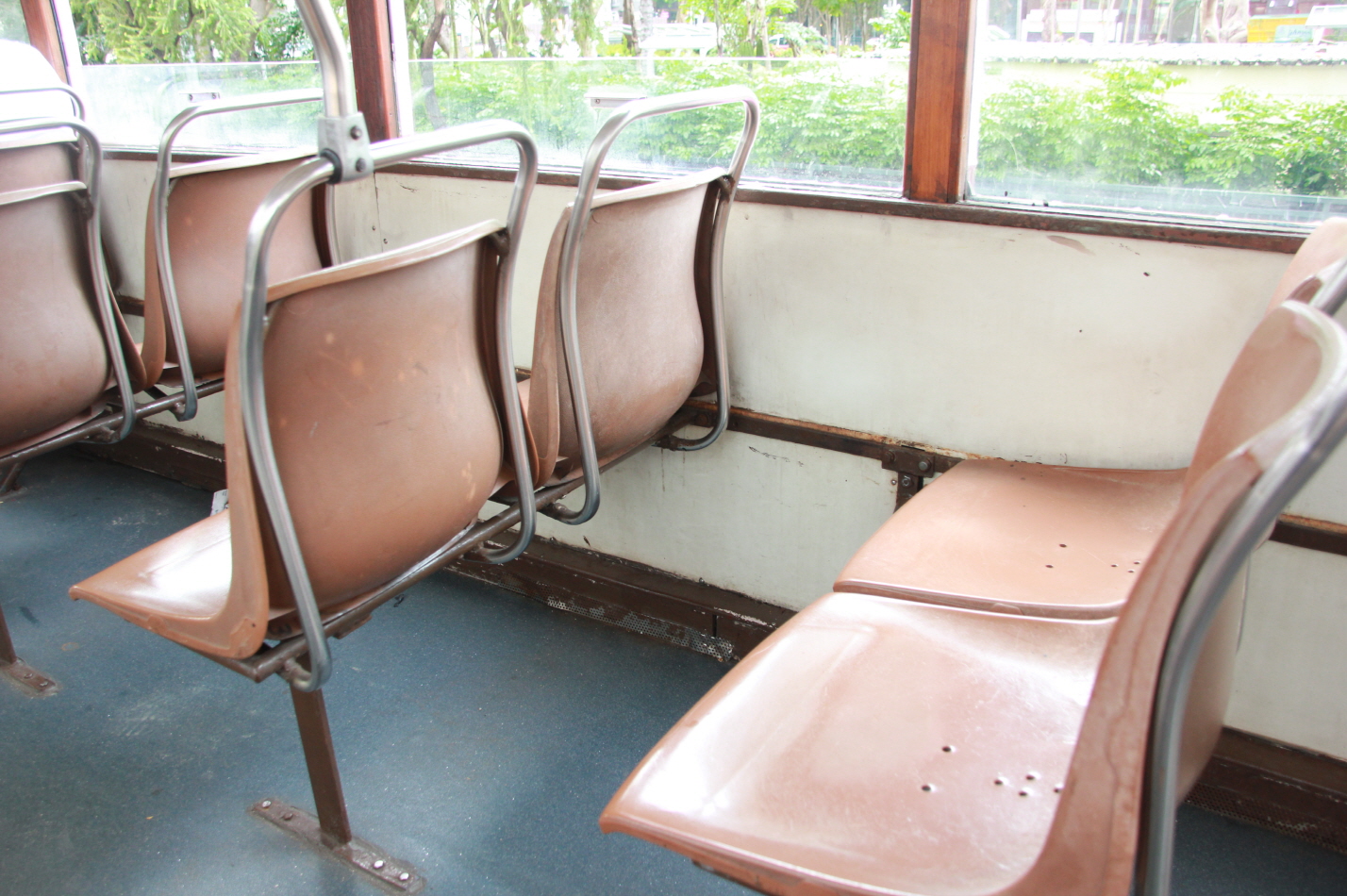 트램은 겉모습은 예쁘고 귀엽게 생겼지만 실내인테리어는 대충 만들어 놓은 듯한 느낌도 들어요. 각파이프 같은 것으로 용접해서 만든 흔적이 보여요. 의자도 푹신한 의자가 아니고 딱딱한 플라스틱 의자예요.