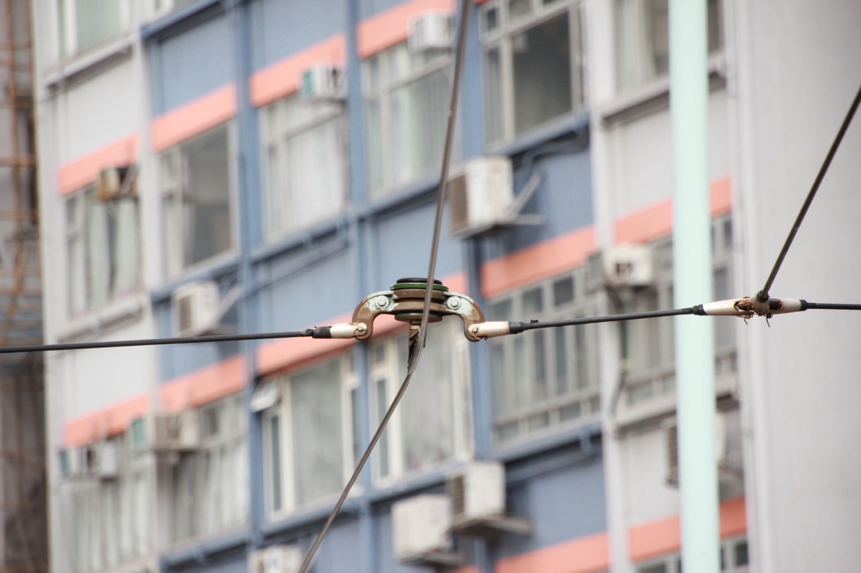 이렇게 생긴 전선과 전선을 고정하는 장치로 트램에 전기를 공급합니다.
