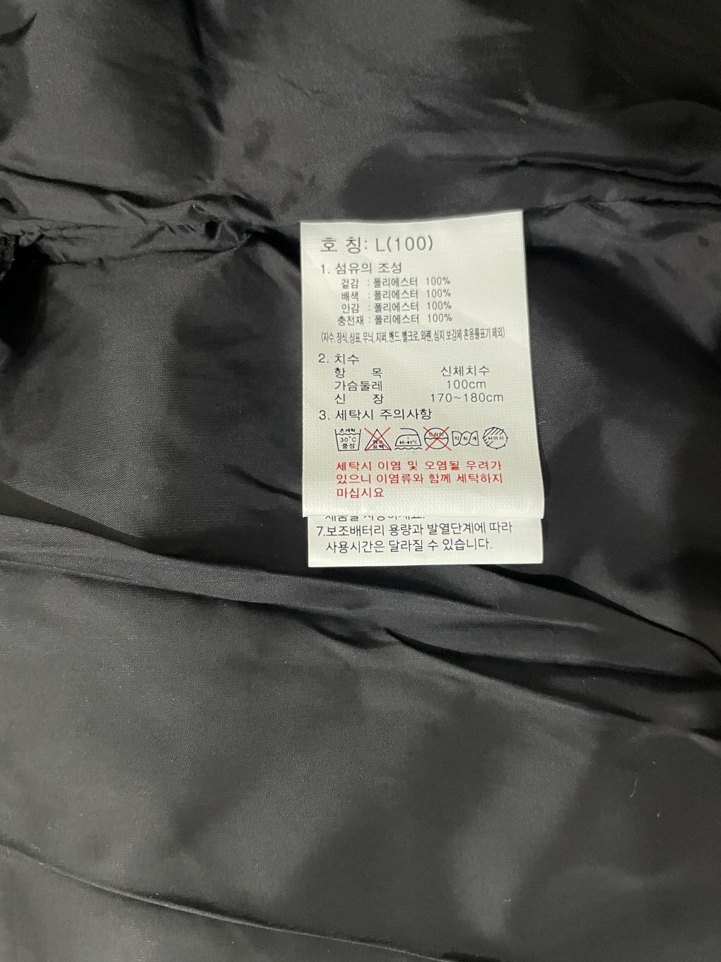 안쪽 주머니에 보조배터리를 넣어 발열패드에 전원을 공급하는 방식.