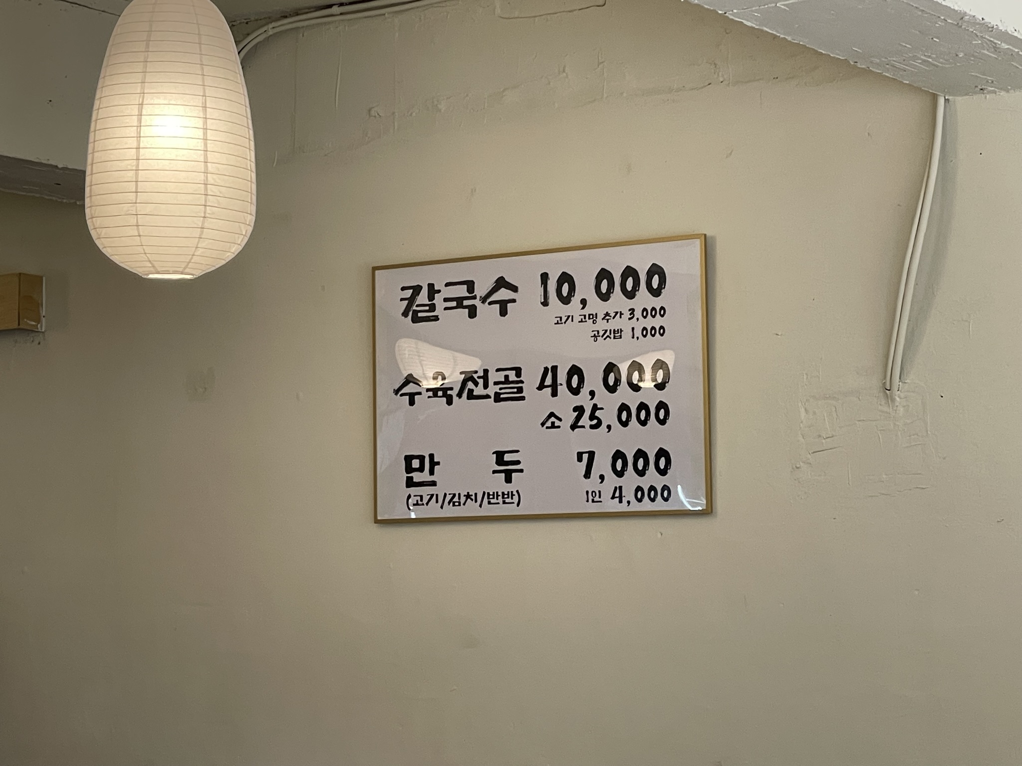 이 집 메뉴는 수육전골, 자가제면 사골 칼국수, 만두 이렇게 3가지인데요.