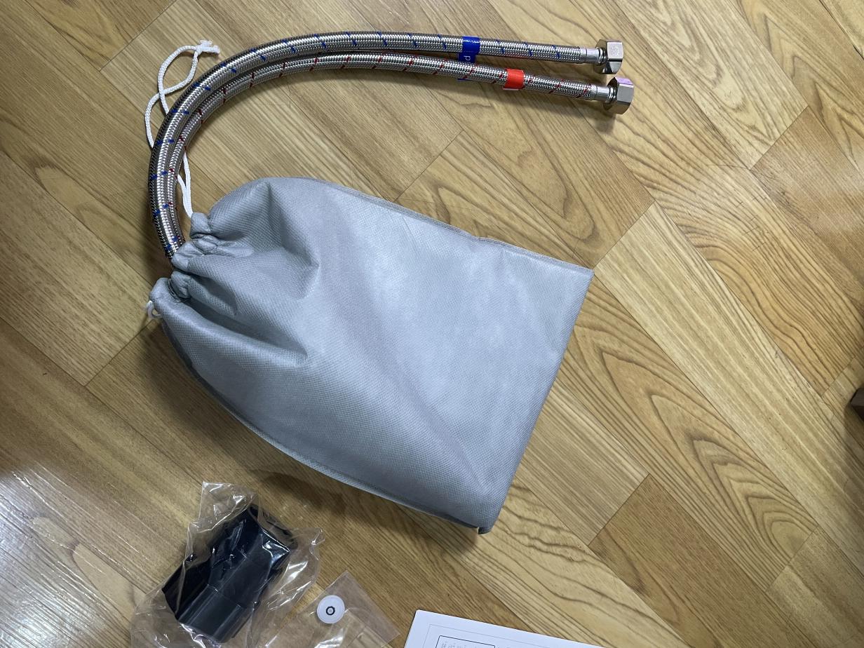 택배는 하루 만에 받아봤는데, 박스를 열어보니 무슨 수전이 부직포 가방에 들었네요.