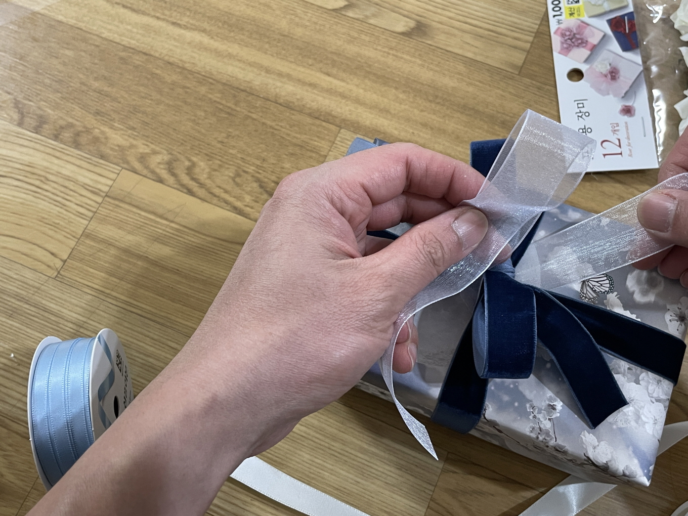 지난번에 다이소 리본으로 선물 포장하는 글을 올렸었는데요. 빨간색 리본으로 포장했었어요. 아래 링크 참고 바랍니다.