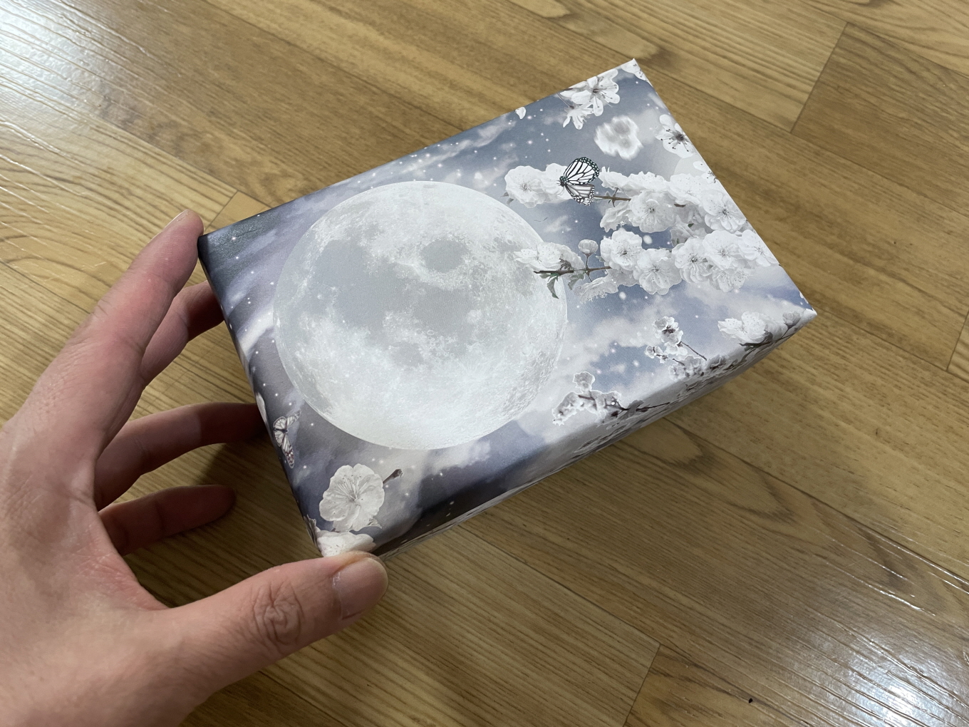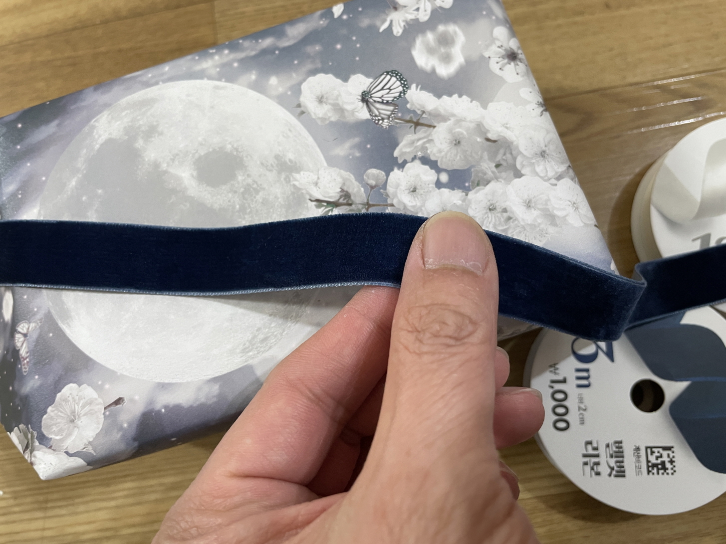 이번에는 파란색? 남색 계열로 포장을 해보려고 해요. 집에 있는 포장지로 보장을 했는데 이런 보름달이 있는 남색계열의 포장지로 포장을 했네요.