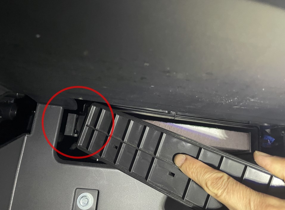 3 안쪽에 있는 필터 커버를 열어야 합니다. 오른쪽에 사진과 같은 손잡이가 있는데요 손가락으로 위아래를 잡아서 누르고 당기면 커버가 분리됩니다.