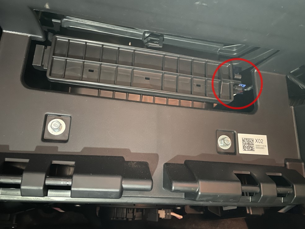 2 글로브박스를 열고 양옆 고정 핀을 안쪽으로 세게 눌러서 분리합니다.