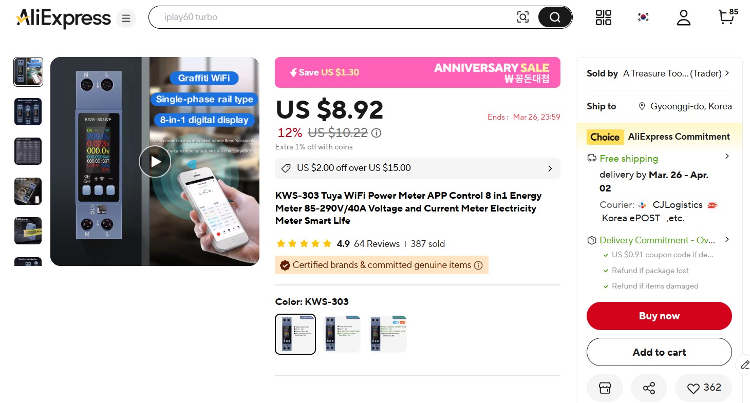 이런 제품은 가격도 좀 비싸고, 제가 생각한 거랑은 좀 달라서 알리익스프레스에서 디지털 전력량계를 구입했어요.