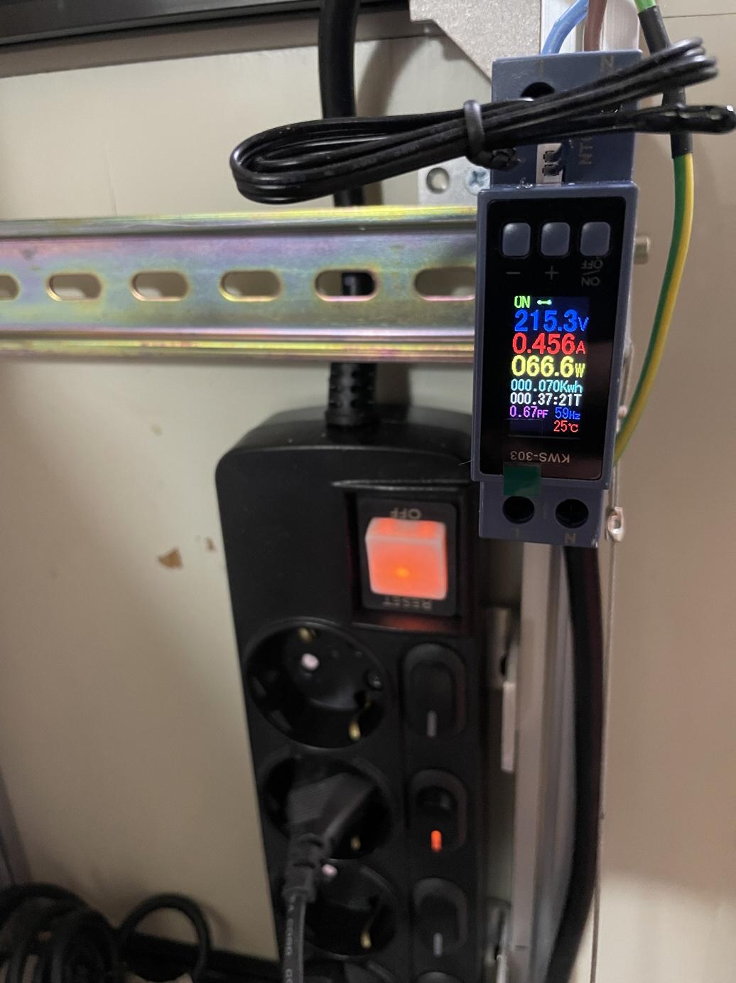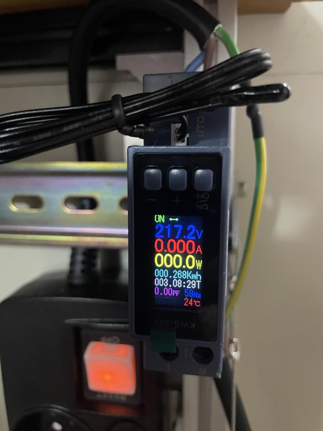 멀티 탭 <– 전력량계 <- 벽면 콘센트 이렇게 설치했습니다. 멀티 탭에 연결되어있는 전자제품들의 사용 전력량을 확인할 수 있어요. (PC, 모니터, 주변기기 등)