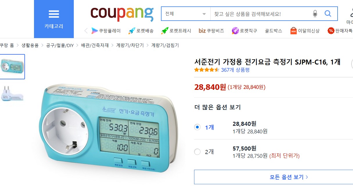 집에서 PC를 오래 켜놓는 편입니다. 전기요금이 얼마나 나올지 궁금하더군요. 그래서 찾아보니 국내 판매되는 제품 중 전기요금 계산되는 측정기도 있고요. 멀티 탭에 실시간 사용 중인 전력량이 표기되는 제품도 있네요. (아래 그림)