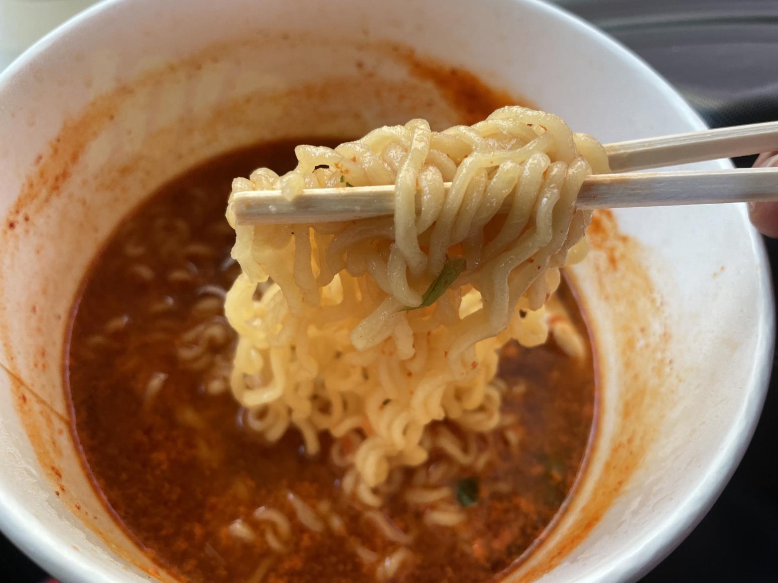 라면 용기 안에서 라면이 끓기 시작하고 맛있는 라면이 완성됩니다.