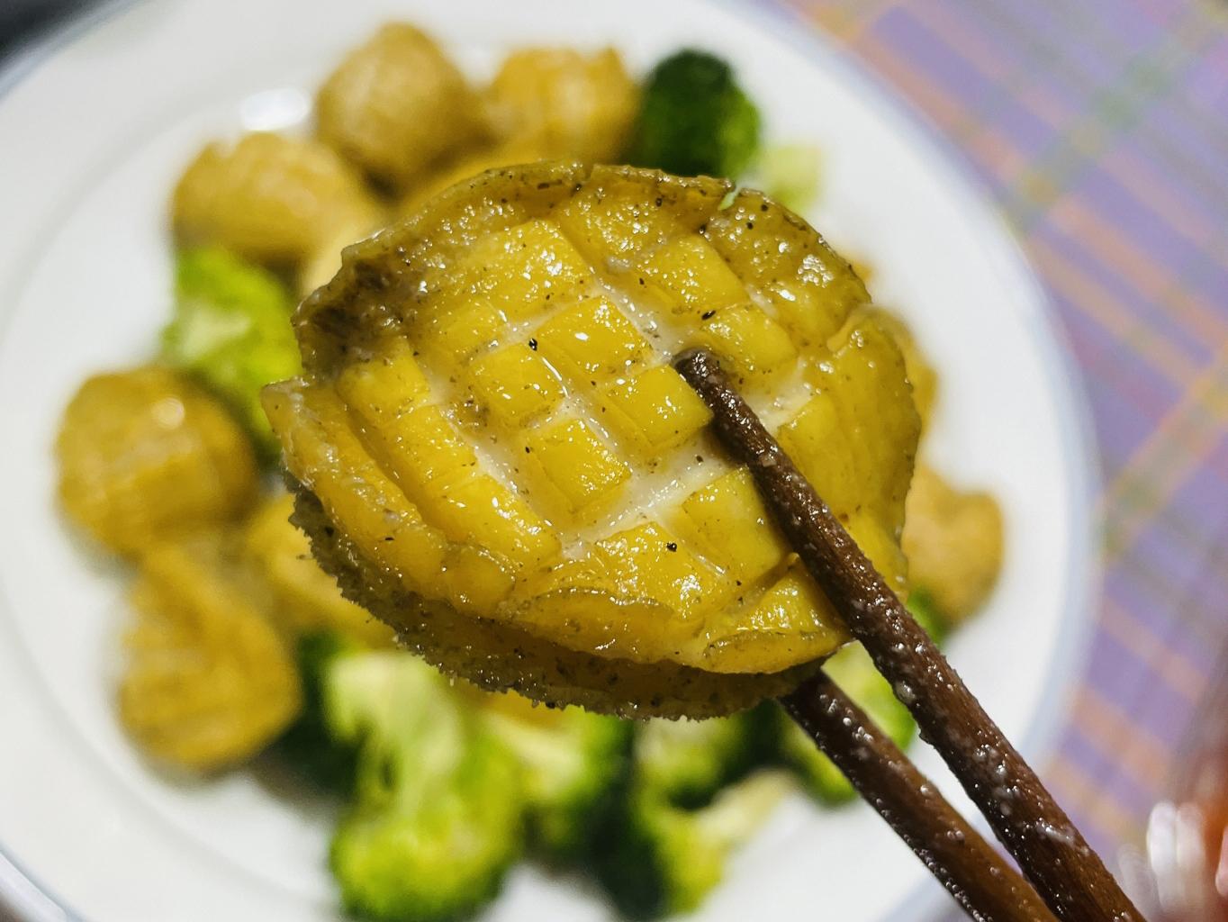손질하기는 손도 아프고, 시간도 오래 걸렸지만 맛은 최고네요. 쫄깃쫄깃하고 담백합니다. 전복이 많아 보이지만 한 젓가락씩 먹으면 순식간에 사라져요. 한입에 먹기 부담되면 가위로 반씩 잘라주면 먹기 좋아요. 싸고 맛있게 먹을 수 있는 전복 버터구이 드셔 보세요~