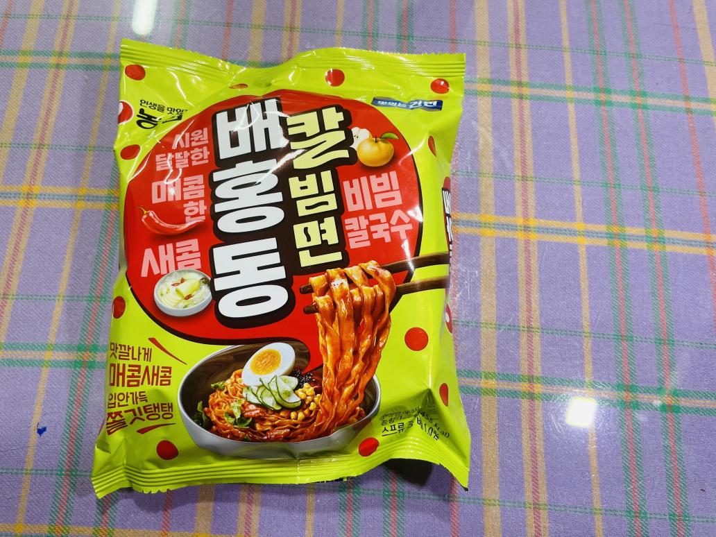배홍동 비빔면으로 유명했던 농심에서 배홍동 칼빔면이 나왔습니다. 오늘 소개할 제품은 매콤새콤 쫄깃한 식감이 매력적인 배홍동 칼빔면입니다. 칼국수면처럼 넓적한 면발과 매콤새콤한 비빔