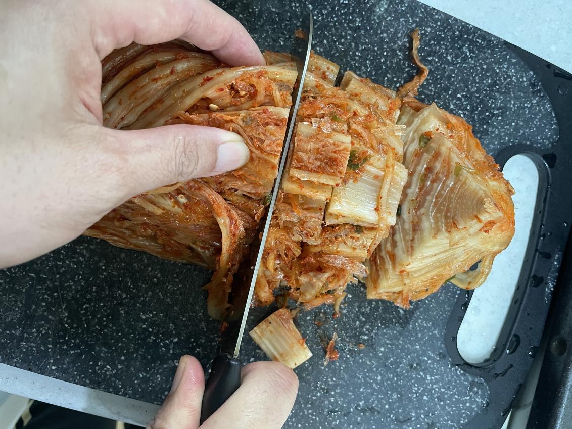 김치를 잘게 썰어 준비합니다.