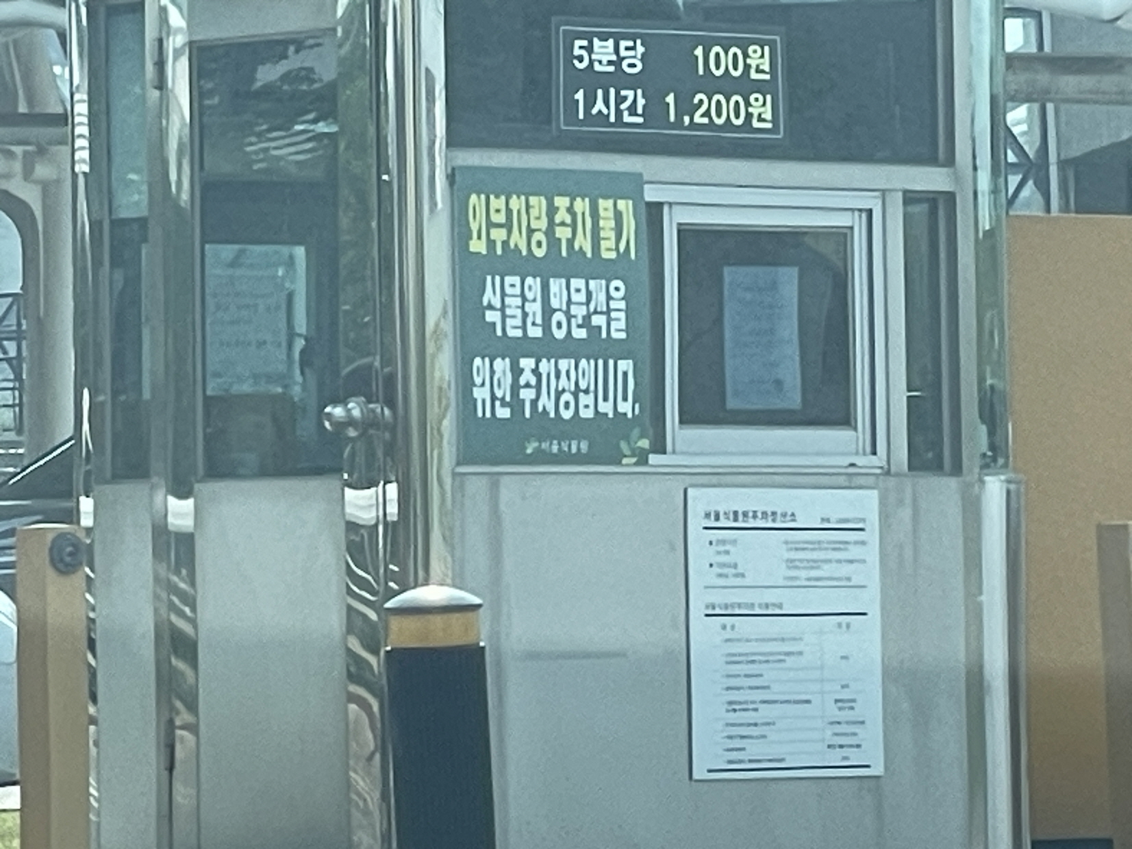주차요금은 서울식물원 주차장과 같은 1시간에 1,200원 이에요. 주차하고 조금만 걸어가면 되니까 서울식물원에 주차하려고 줄 서거나 맞은편 건물에 주차하거나 마찬가지네요.