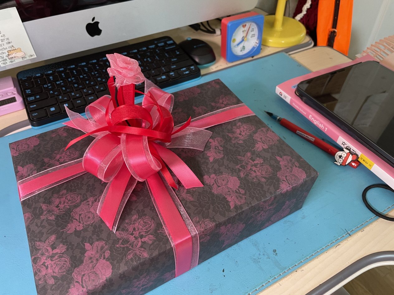 학교에서 돌아오기 전 책상 위에 올려놓아요. 방에 들어와서 보면 깜짝 놀라겠죠? 이렇게 화려하게 리본까지 포장해서 선물하면 서프라이즈 연출도 가능합니다.
