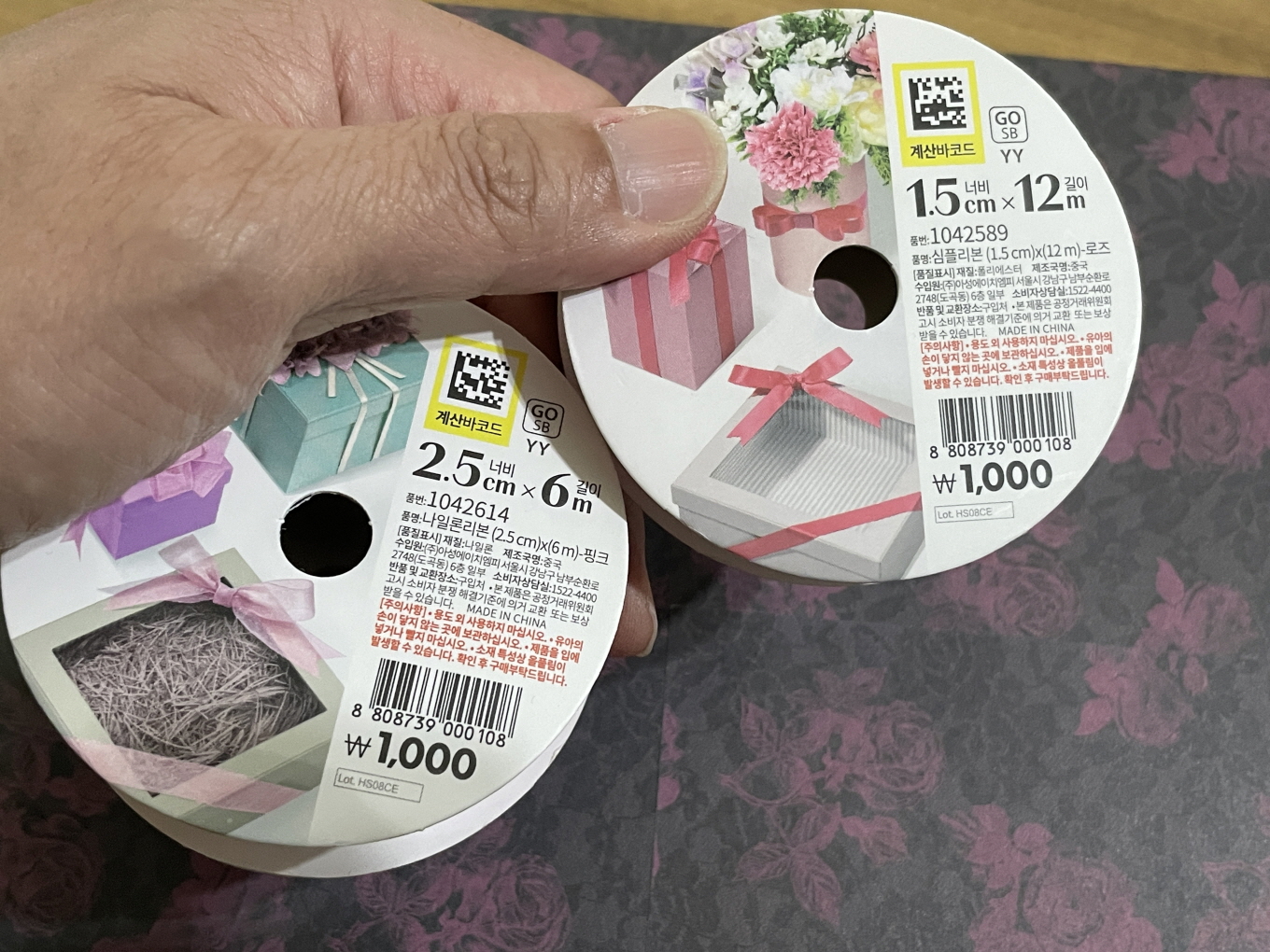 요즘은 다이소에서도 리본종류가 비교적 많이 나오기 때문에 다이소에서 구입한 리본으로만 사용했어요.