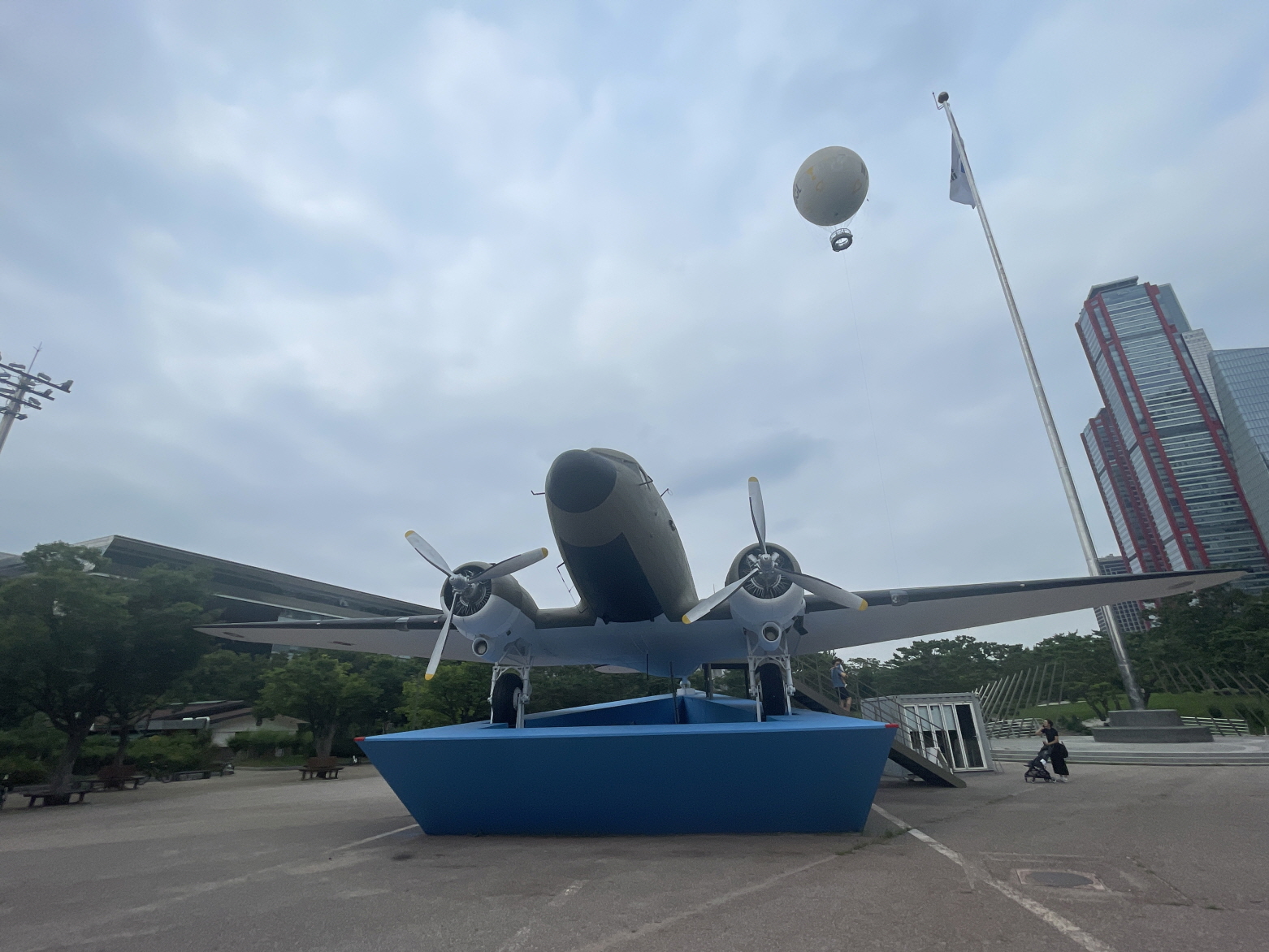 탑승 후 주변에 여의도 공원에 산책하고 오면 좋아요. C-47 비행기도 전시되어 있어요. 옛 여의도광장 비행장의 의미를 생각하게 합니다. 안에는 더워요.