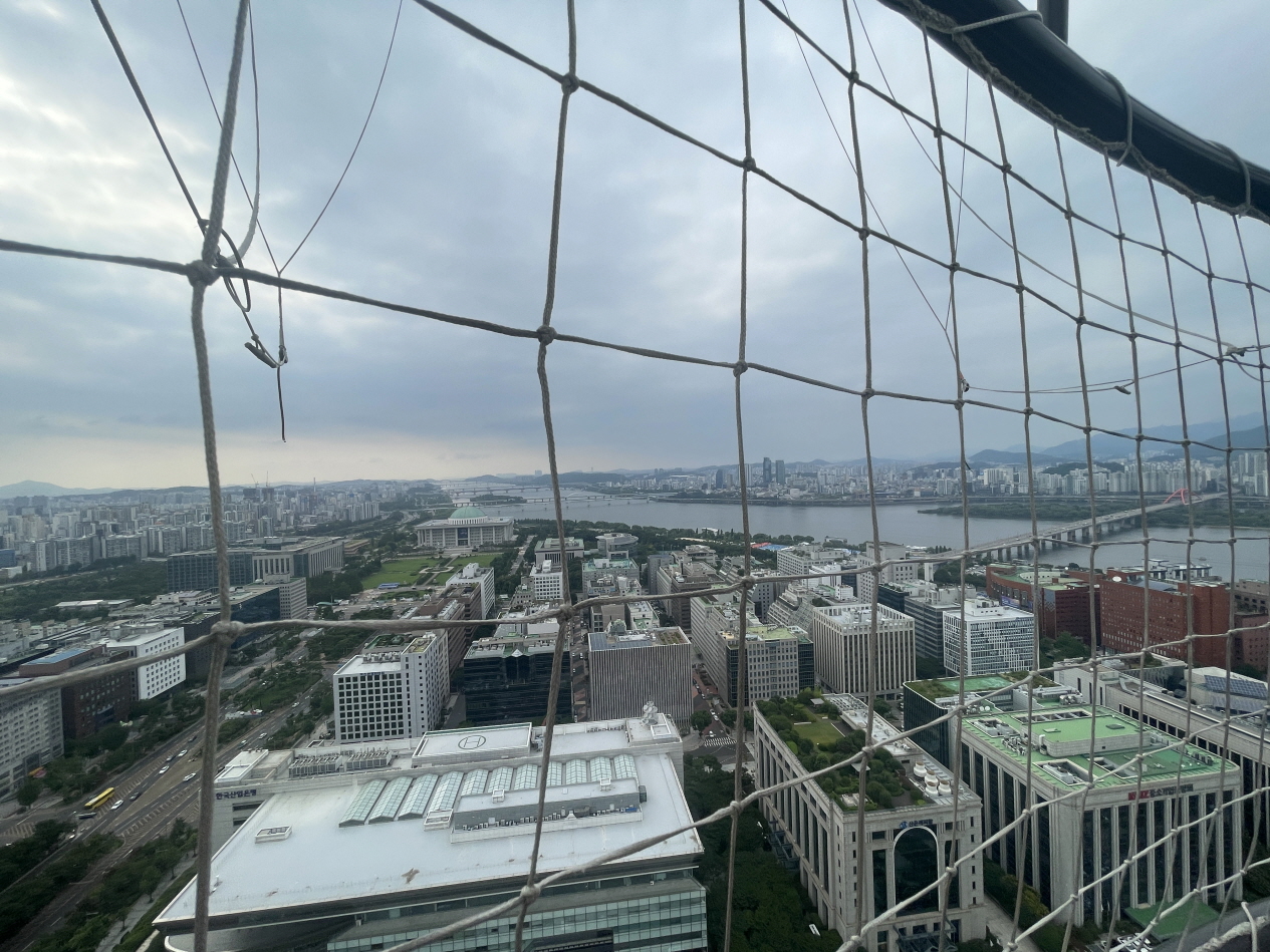 한강이 보이고 주변 고층건물들과 여의도공원이 훤히 보입니다.