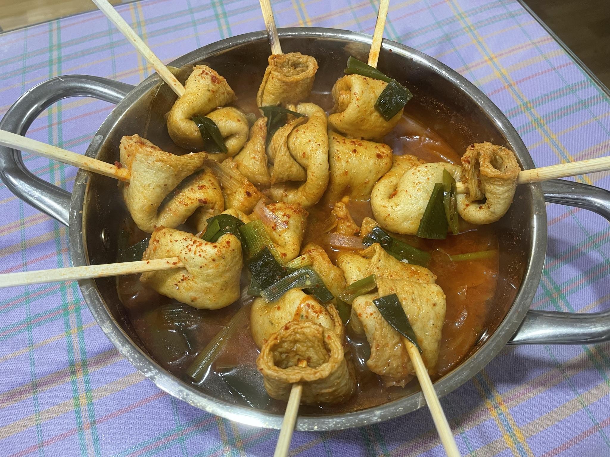 어묵 꽂이에 꽂아서 빨간 국물에 익히면 술안주로도 좋습니다.