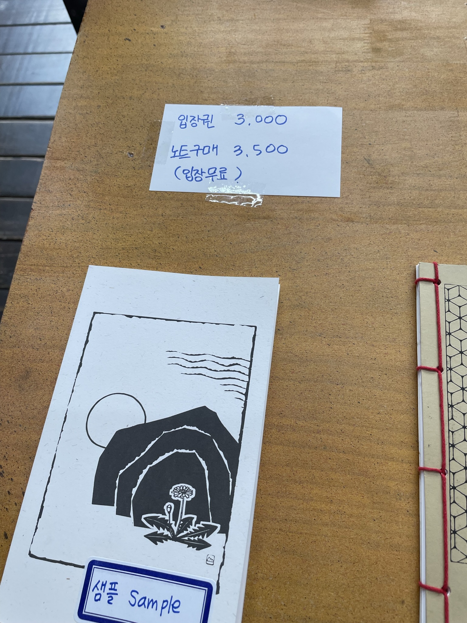 입장료3,000원인데 수첩 구매(3,500원)하면 입장료 없이 입장 가능합니다.