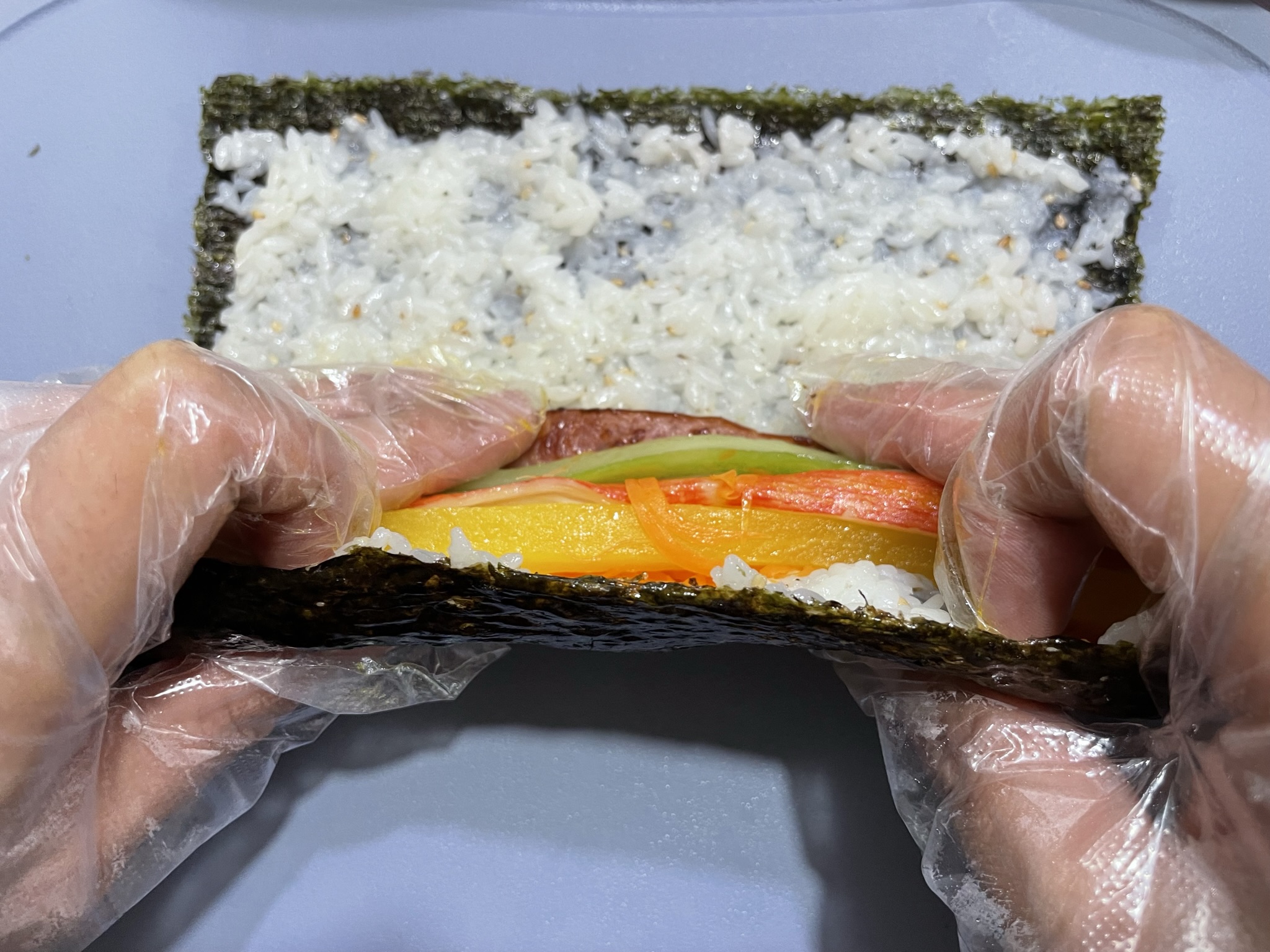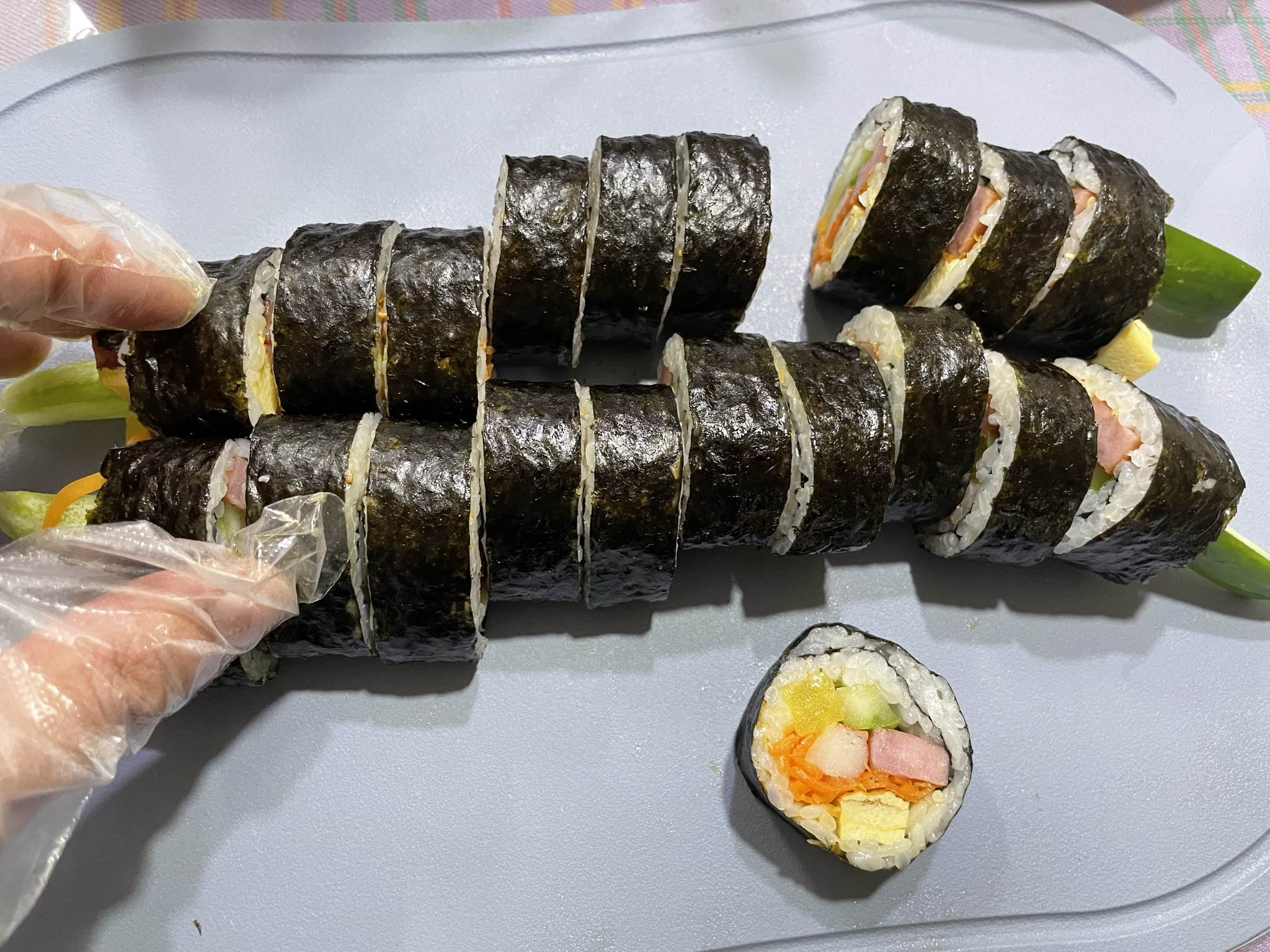 예전에는 김발을 많이 썼었는데 요즘은 그냥 김발 없이 손으로 말아도 괜찮아요.