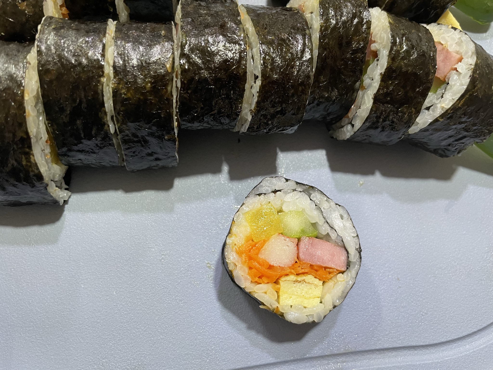 속 재료- 햄, 단무지, 맛살, 당근, 오이, 계란