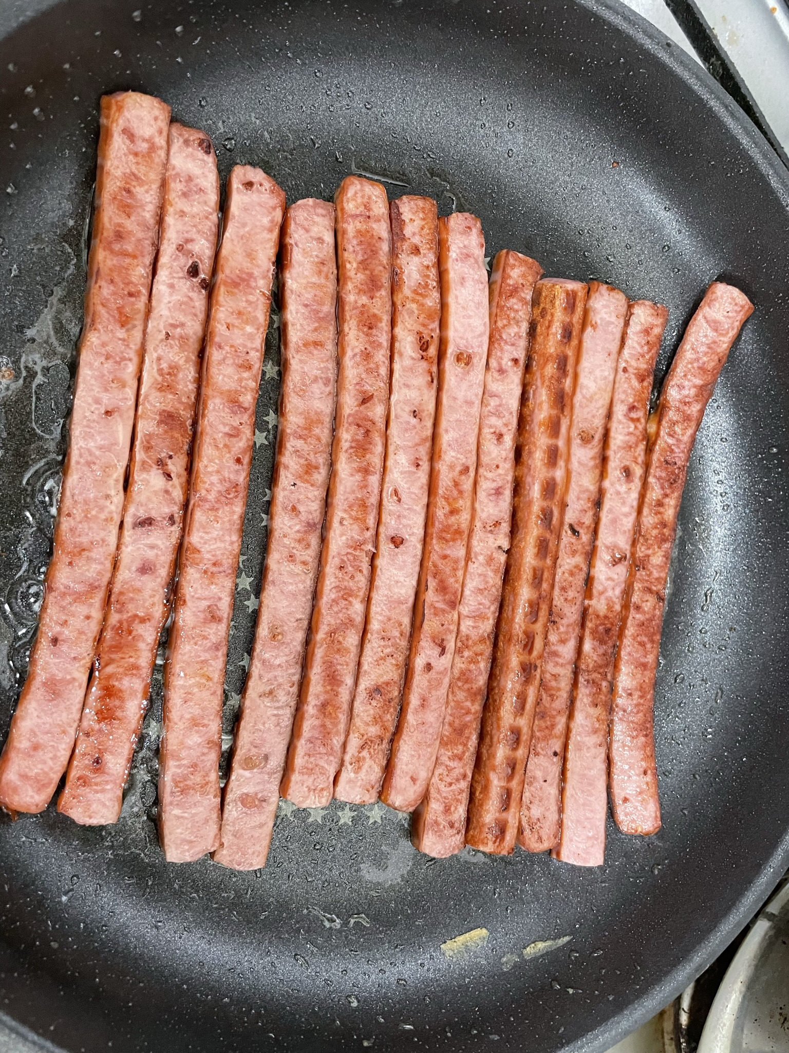 햄은 타지 않을 정도로 바싹 볶아야 맛있어요.