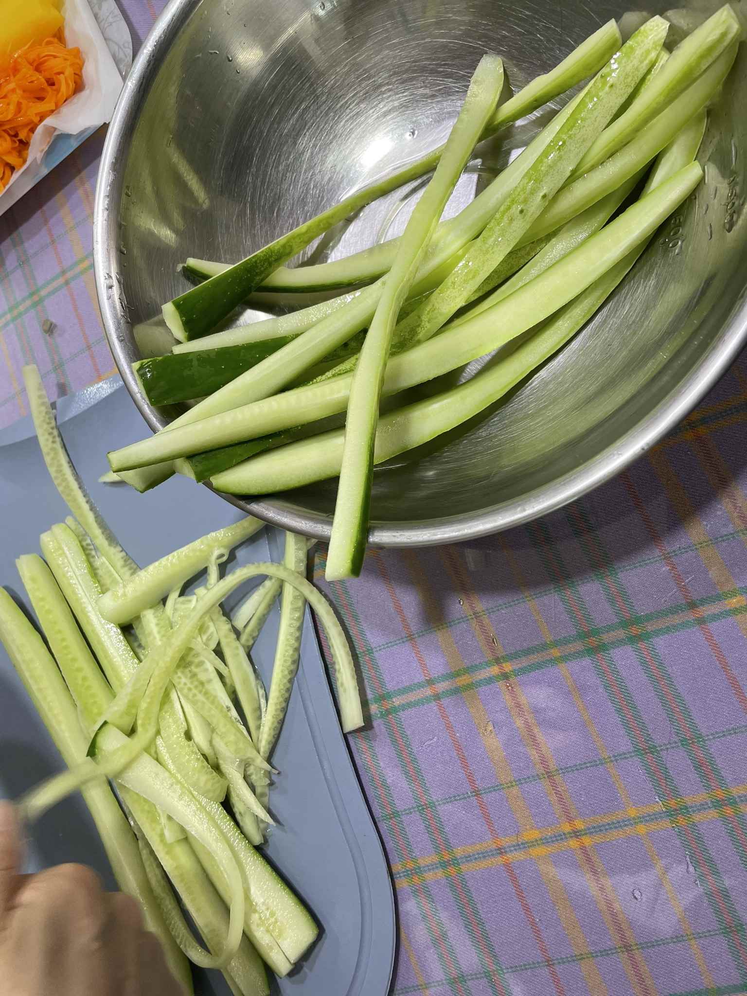 가장 먼저 오이부터 준비해야 해요. 오이가 소금에 절여지는 시간이 오래 걸리기 때문이죠.