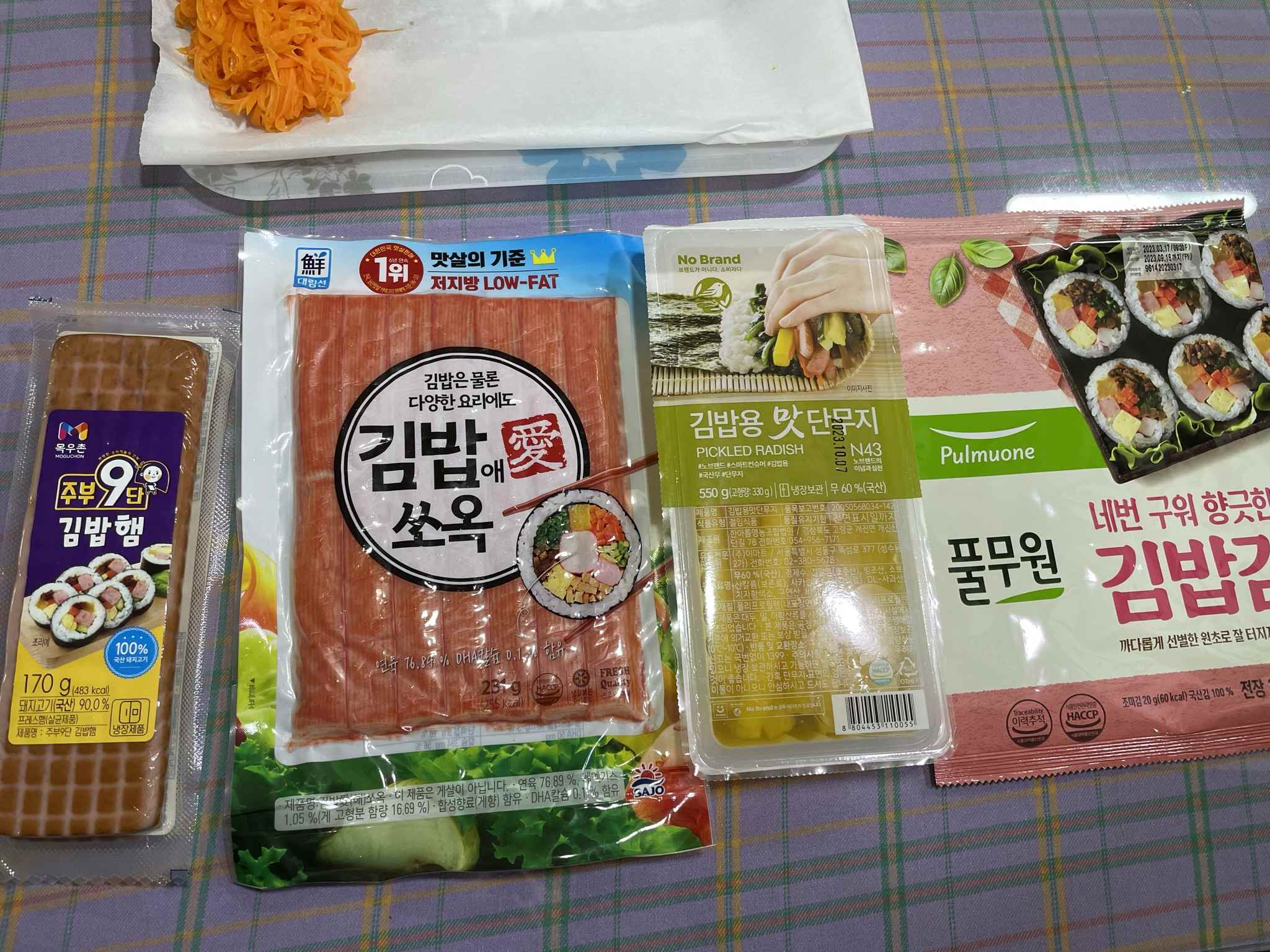 속 재료- , 단무지, 맛살, 당근, 오이, 계란