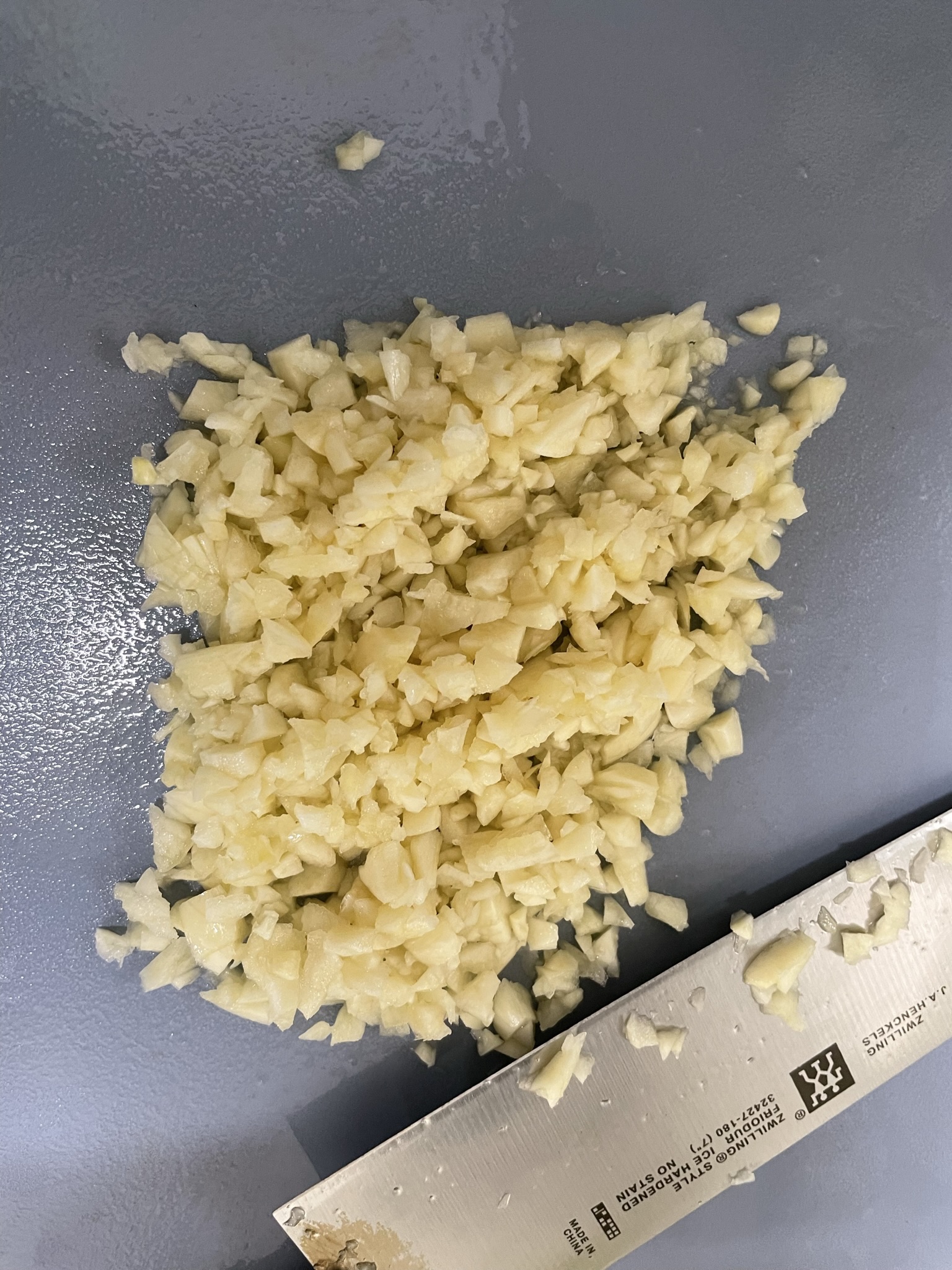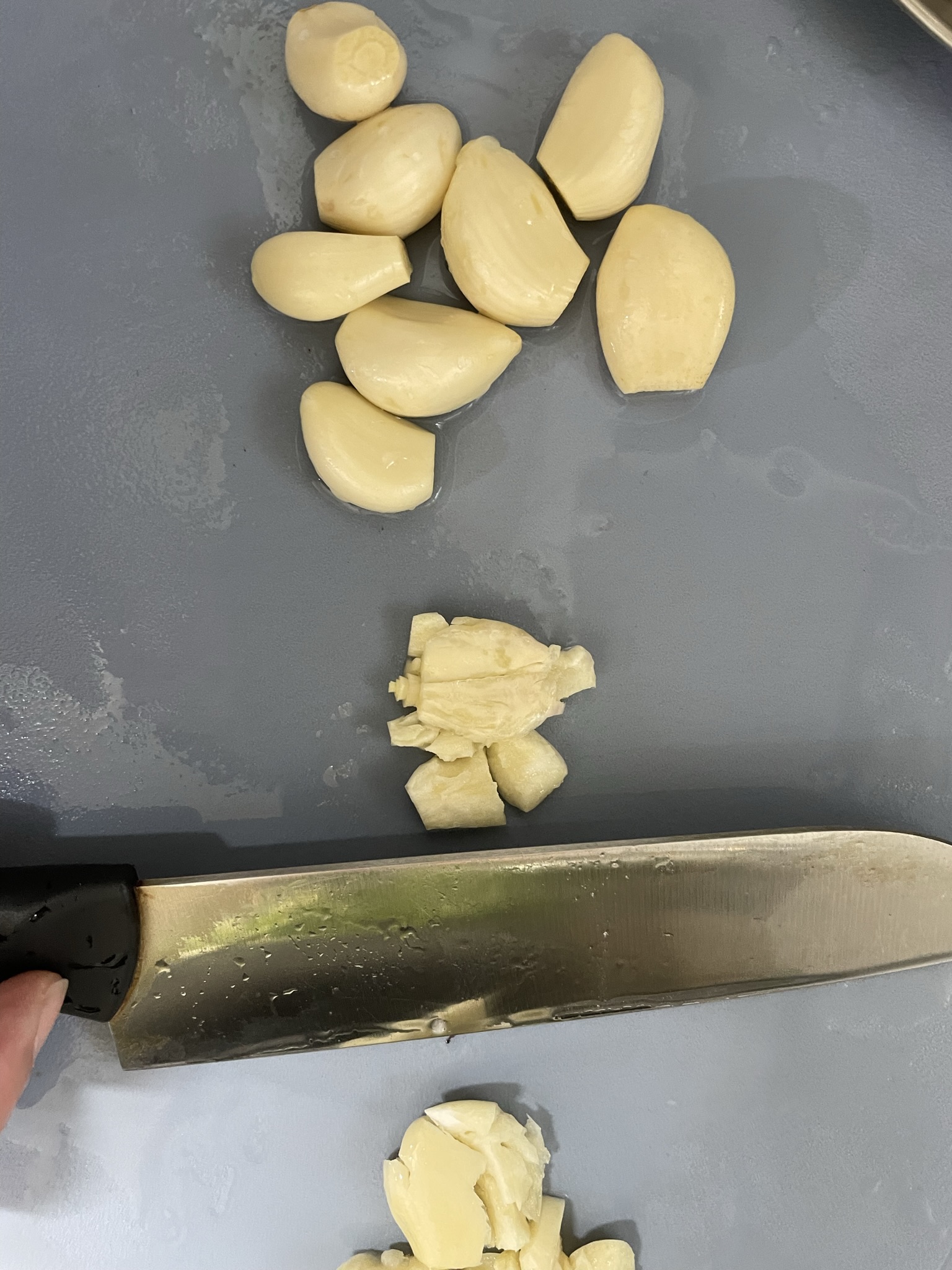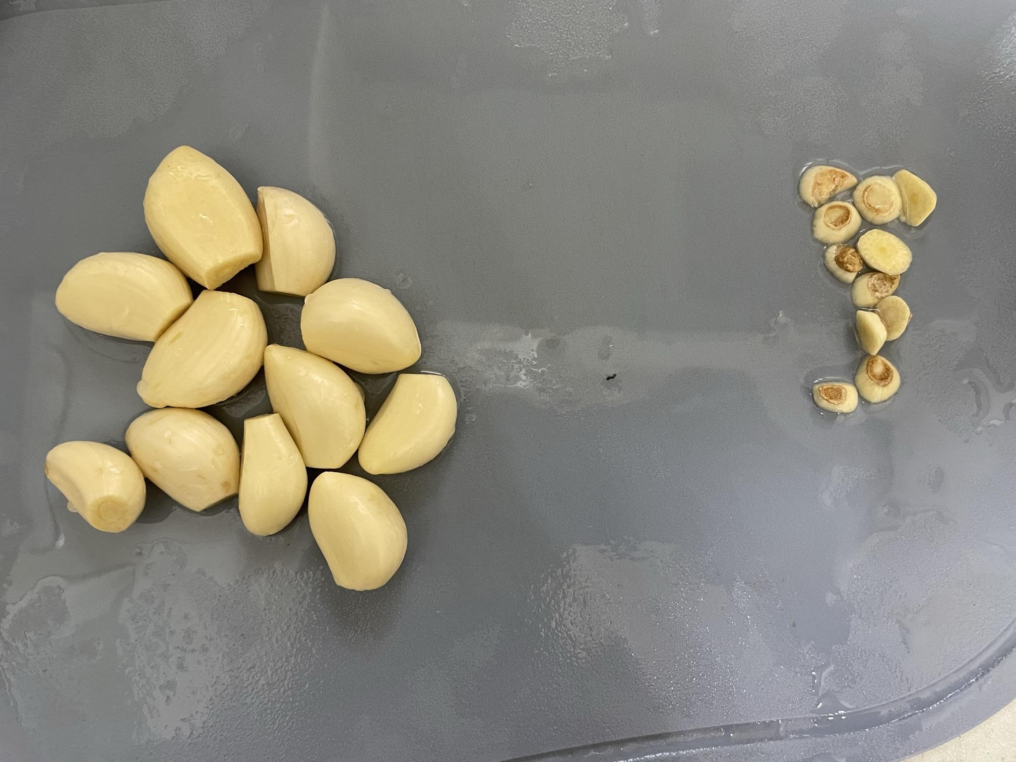 3. 다진 마늘 준비합니다. 칼 옆면으로 눌러 으깬 후 다지면 됩니다.