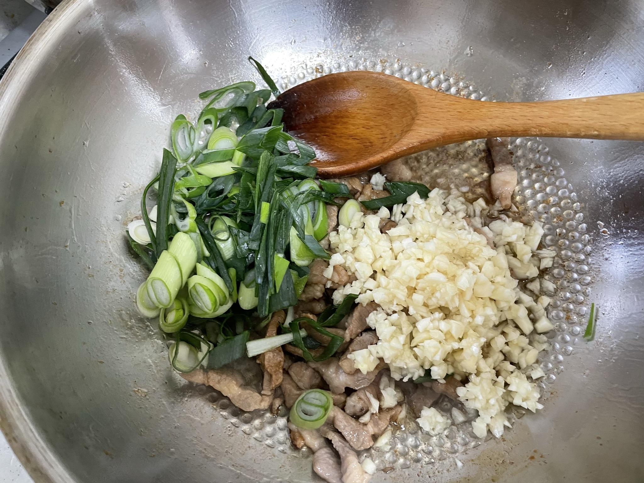 3. 파와 다진 마늘을 넣고 같이 볶습니다.