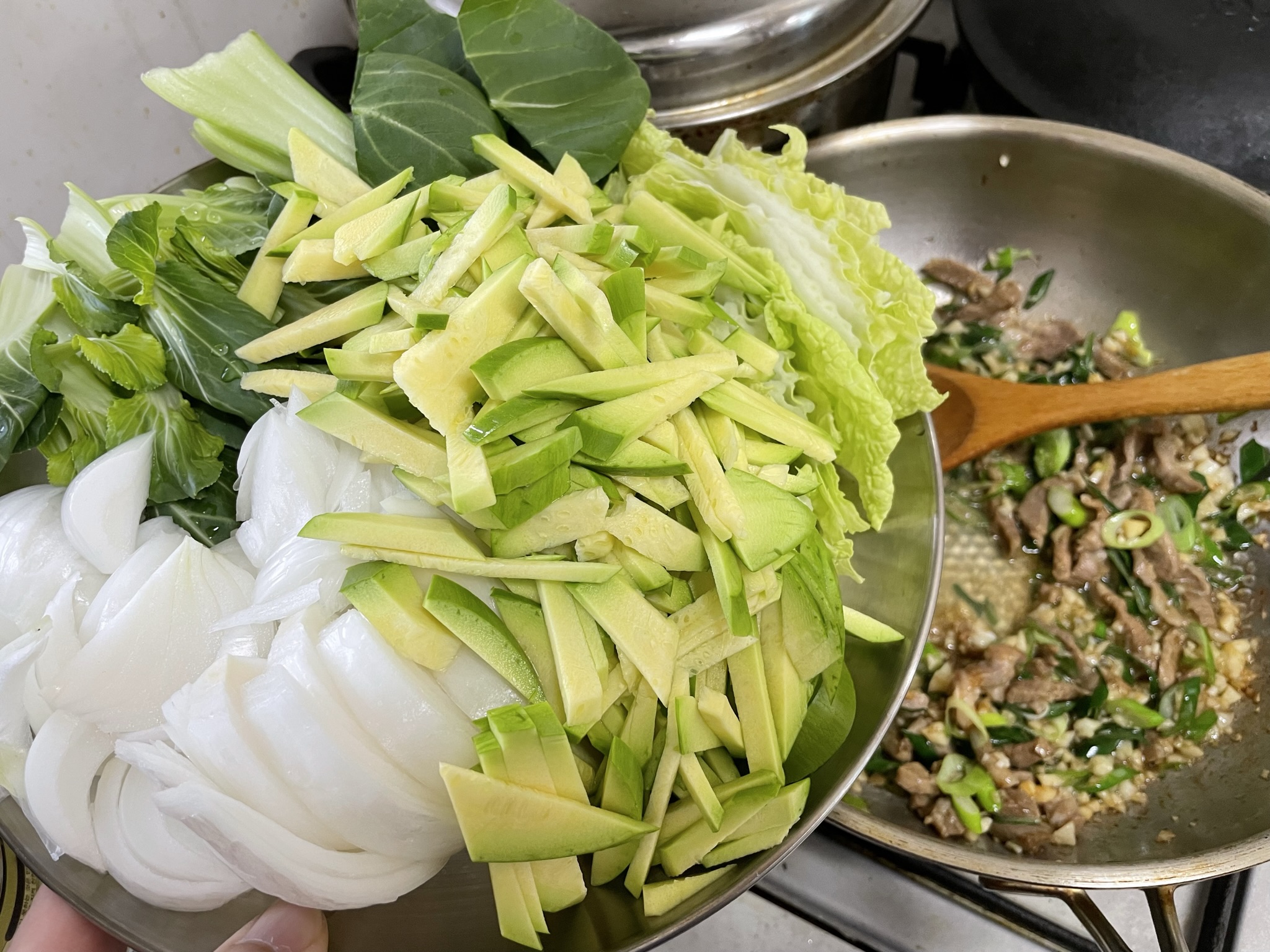2. 청경채와 배추는 먹기 좋은 크기로 잘라 준비합니다.
